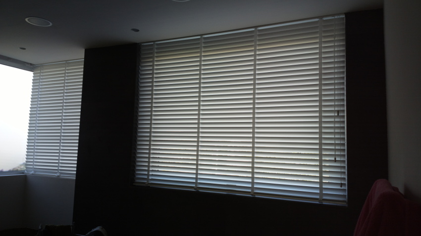 Fabrication de persiennes venitiennes en lattes de bois leger finition peinture laque dimensions sur mesure